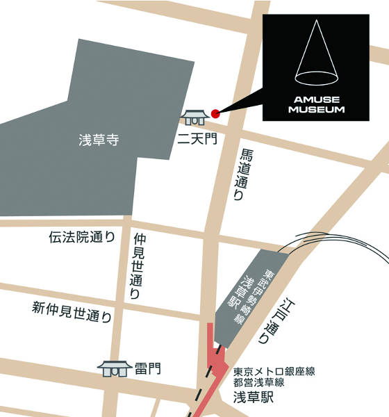 〒111-0032 東京都台東区浅草 2-34-3 TEL:03-5806-1181 営業時間:10時〜18時(最終日は16時まで) HP:http://www.amusemuseum.com/ |