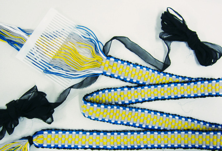 小さな織機ヘドルルームで長さ1.5mの裂き織りベルトを作ります。要予約